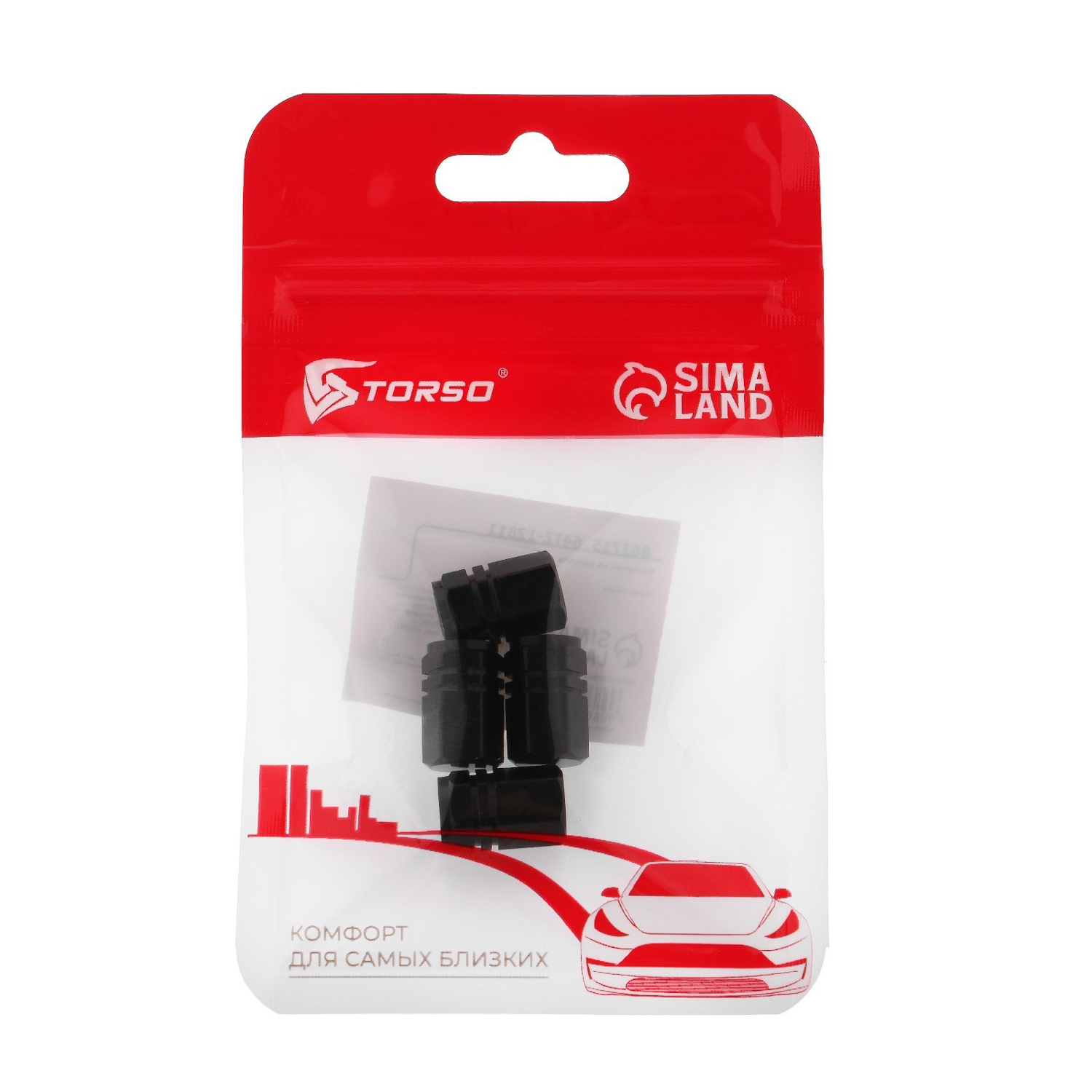 Колпачки на вентиль TORSO черные, набор 4 шт. 863715