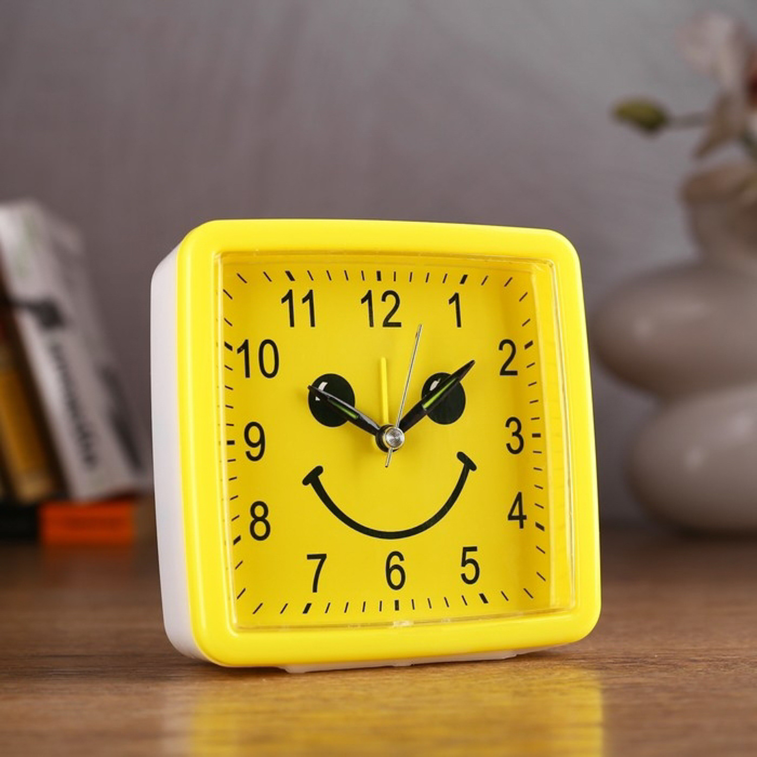 Будильник "Смайл", квадратный, желтый, 11х11 см микс 2778922