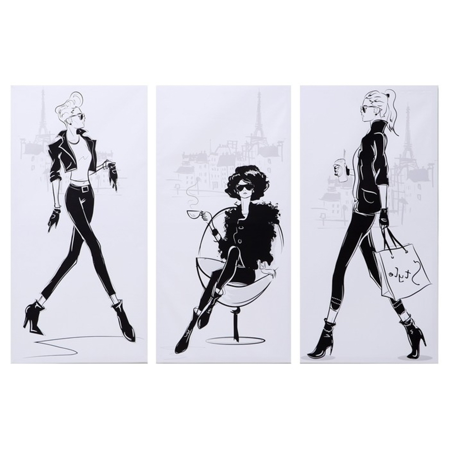 Картина модульная на подрамнике "Французский шик" 65*100 см (3шт х32 х 65см) 9536677