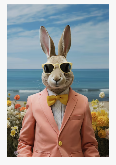 Картина "Заяц в розовом смокинге" на деревянном подрамнике 40х50 см