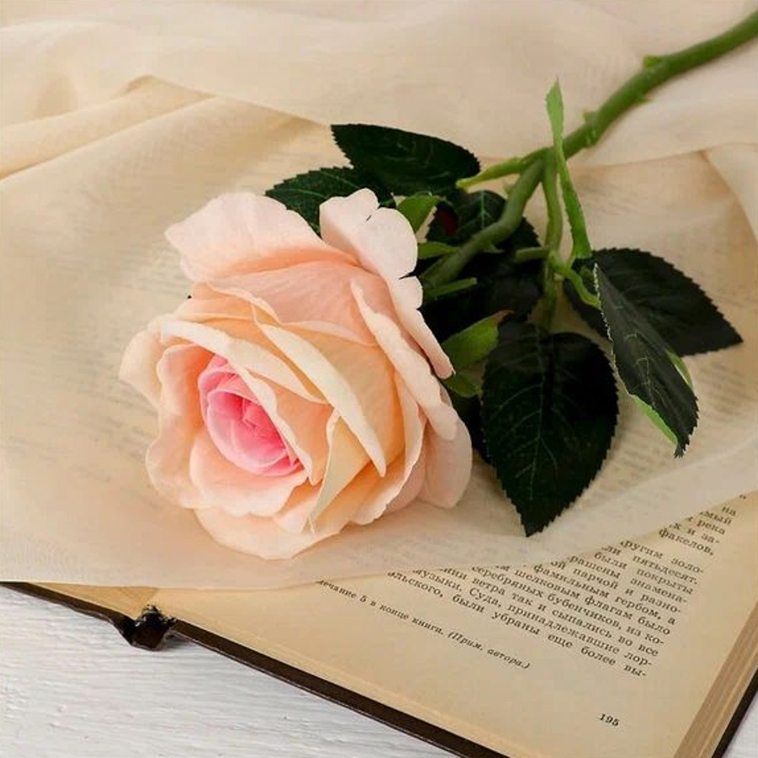 Цветы искусственные "Роза венесуэльская" 8х23 см, персиковый 3933372