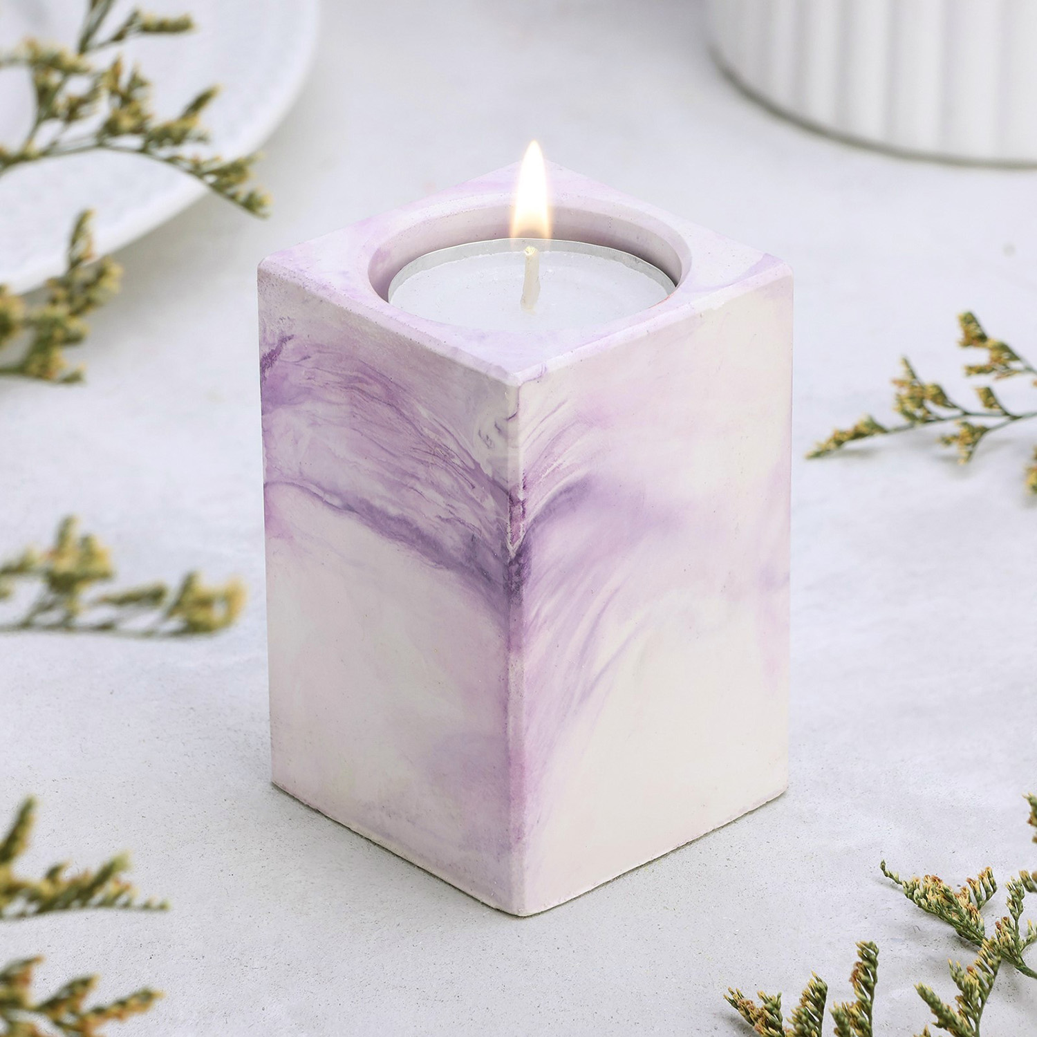 Подсвечник "Квадрат" из гипса, 5х8см,мрамор с фиолетовыми полосками 10059934
