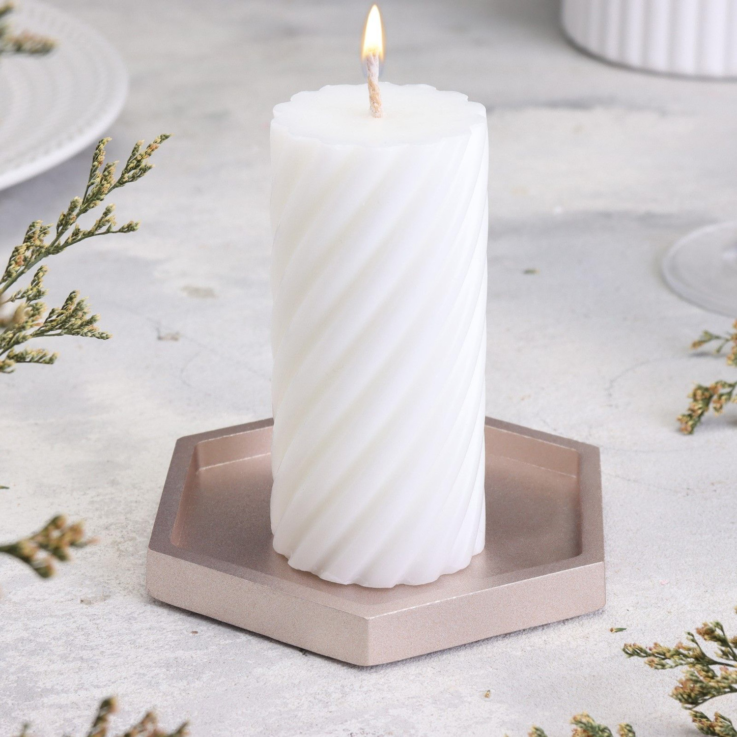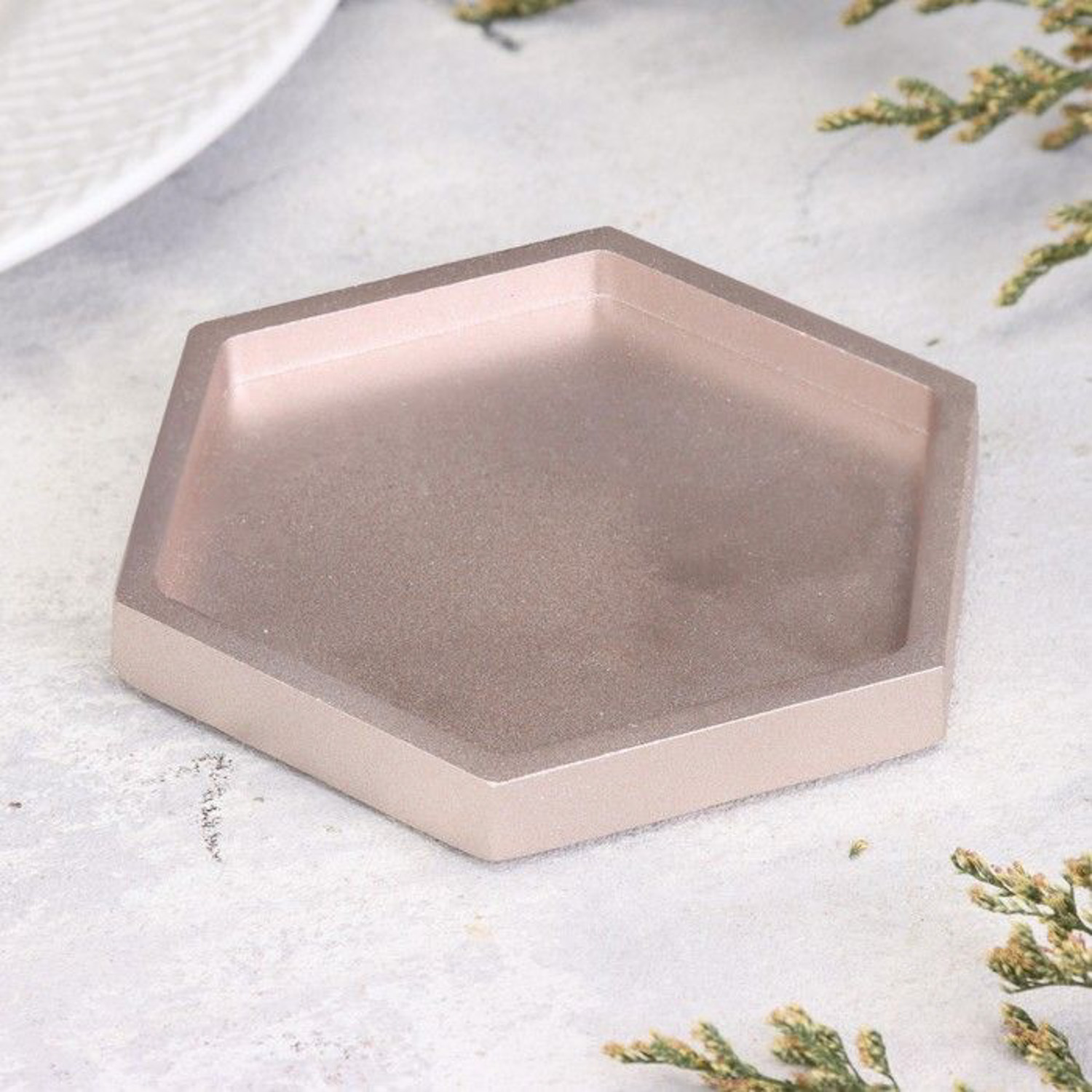 Подсвечник "Шестигранник. Мрамор" из гипса,9,7х11,3х1см,шампань 10059851
