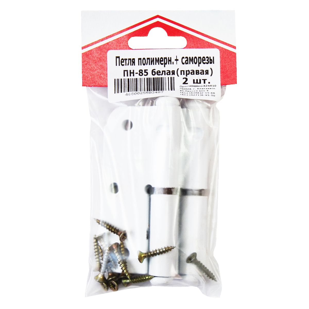Петля полимер.ПН-85 белая правая (комплект 2 шт+саморезы) ДомоСтрой *1/90