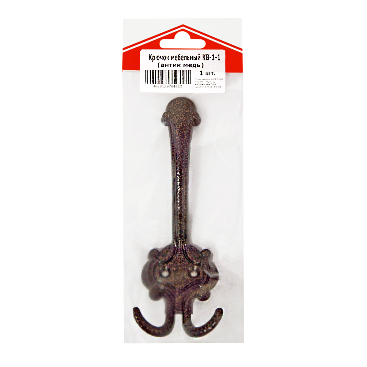 Крючок мебельный АНТИК МЕДЬ КВ-1-1 "Точки" ДомоСтрой *10/50