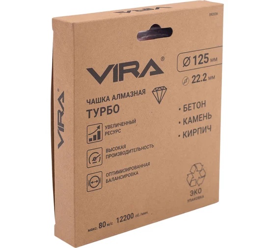 Чашка алмазная шлифовальная 125*22,20мм бетон/камень/кирпич Turbo арт.592036 VIRA *1/20/40