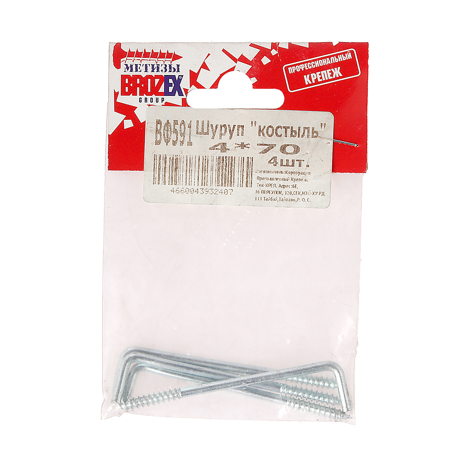 Шуруп "костыль" BROZEX 4*70 оцинков. (4шт) *10/100