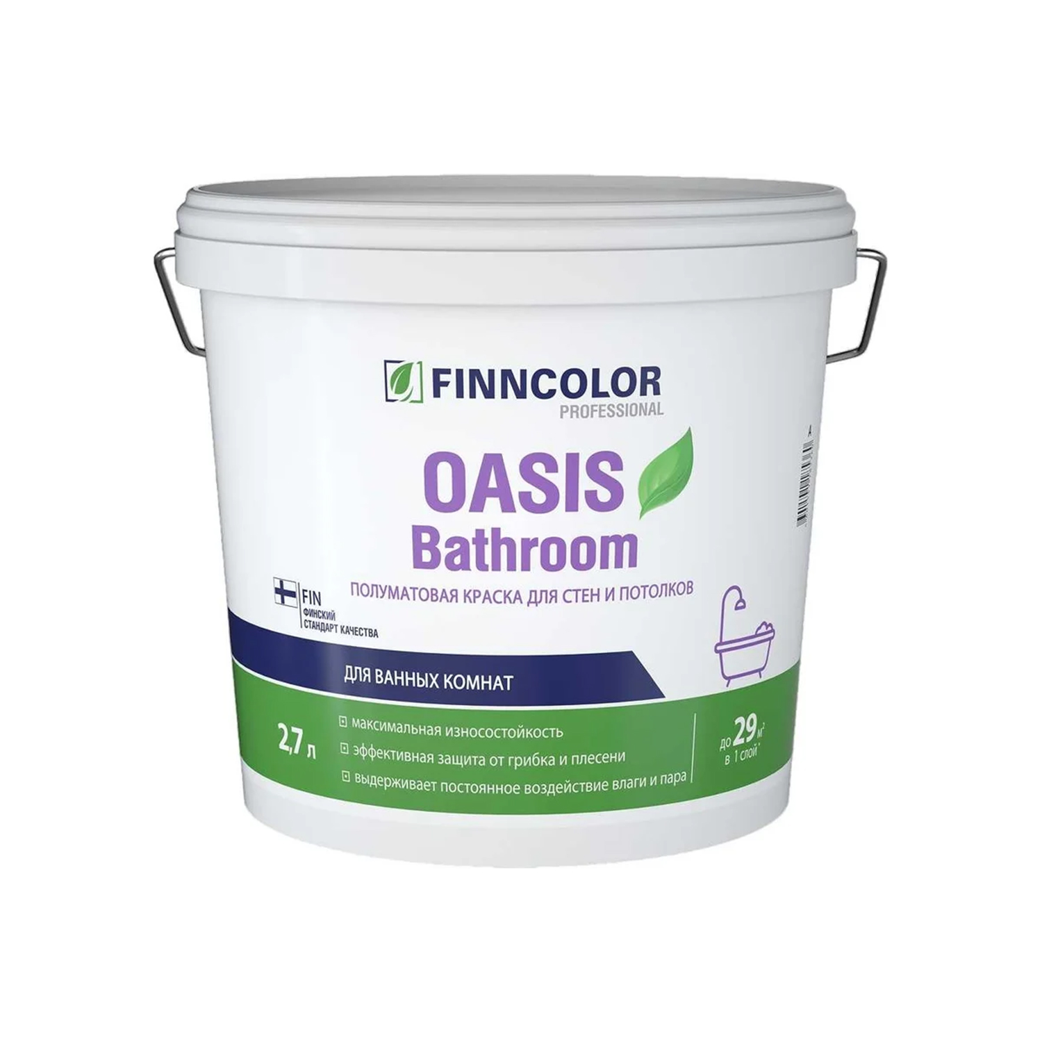 Краска акриловая для стен и потолков "Finncolor" Oasis Bathroom База A 2,7 л п/мат влагостойкая*1