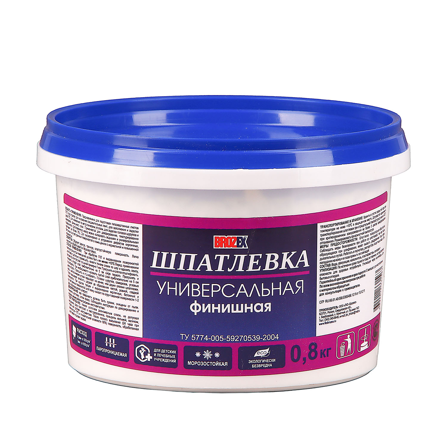 Шпатлевка финишная универсальная BROZEX 0.8 кг предназначена для подготовки гипсокартонных листов под отделку, выравнивания кирпичных, бетонных, оштукатуренных оснований, а также для декорирования, текстурирования поверхностей. Образует ровное прочное влагостойкое покрытие. Легко наносится и обрабатывается. Возможна колеровка шпатлевочной массы водными и универсальными пастами.