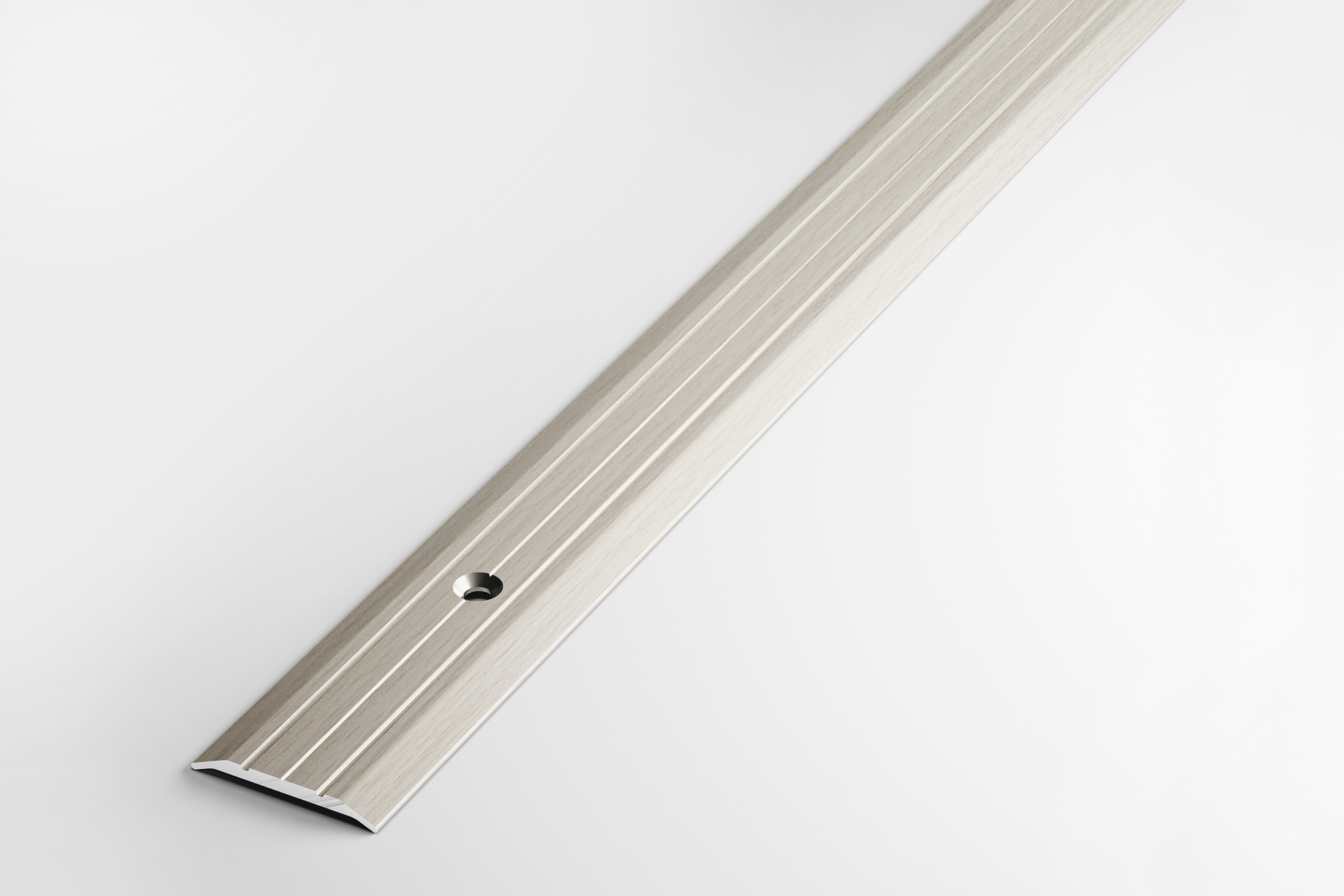 Порог-стык 25х900 мм Лука ПС 01, бук беленый 053 — плоский алюминиевый профиль с двумя желобками для оформления перехода между поверхностями, расположенными на одном уровне. Выполняет декоративную и защитную функции: придает полам завершенный вид, предохраняет кромку ламината, плитки, линолеума и прочих материалов от различных повреждений, не пропускает в стык грязь. Порог имеет открытое крепление. Поставляется в индивидуальной упаковке, с саморезами и дюбелями в комплекте.