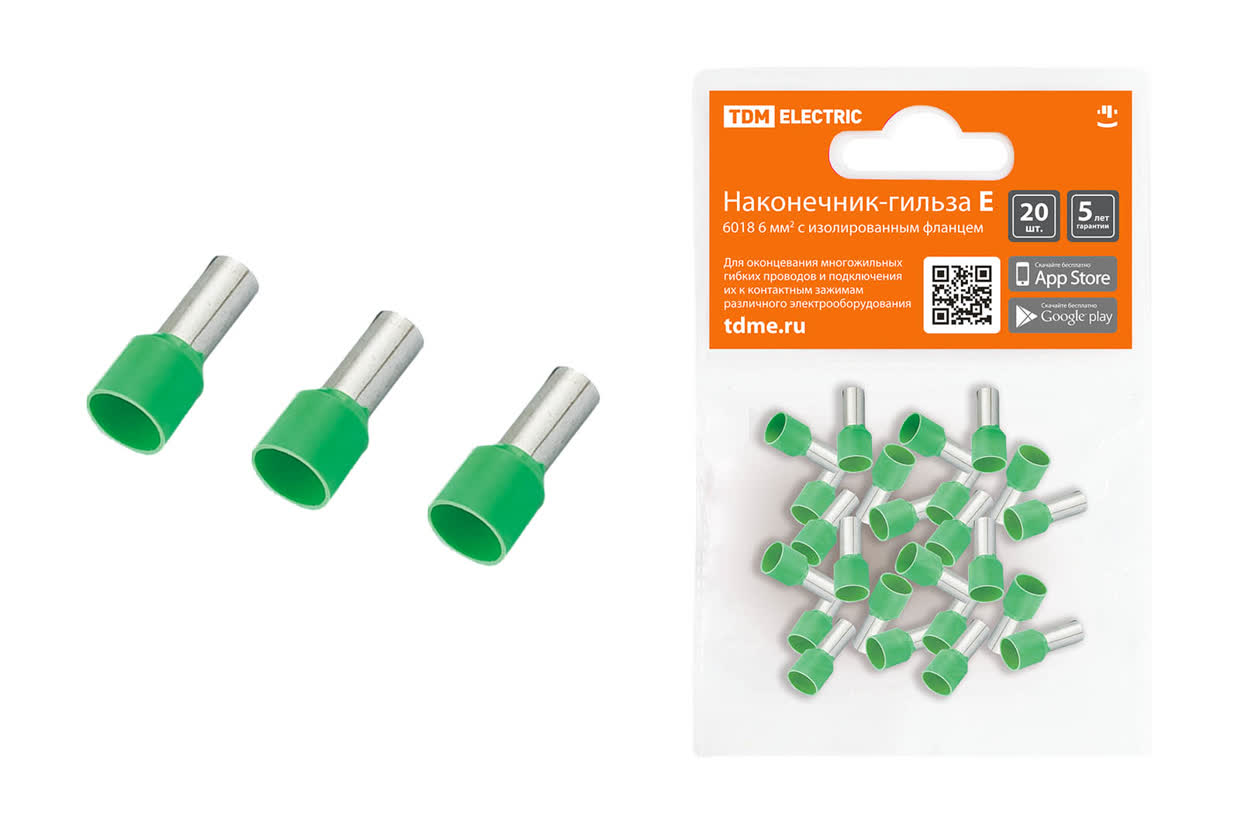 Наконечник-гильза Е6018 6мм2 с изолир. фланцем (20шт) TDM SQ0568-0044 *1/20