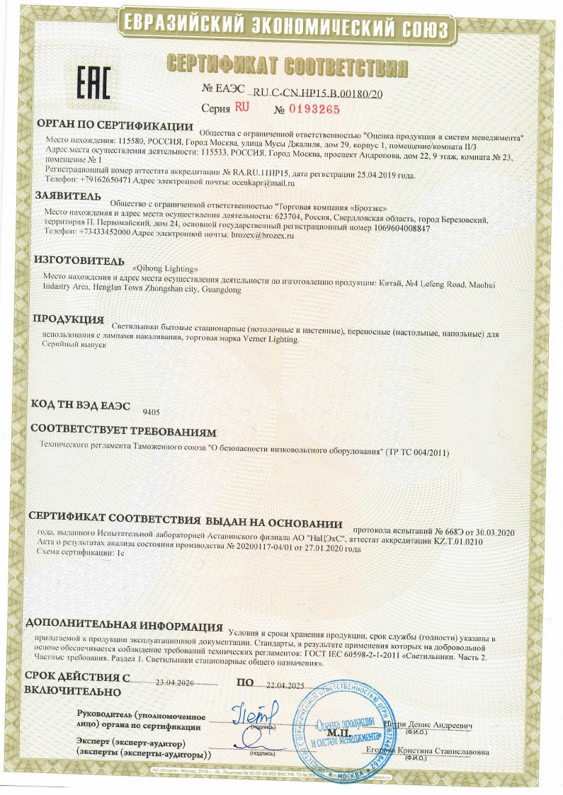 Люстра Е1012/1Н 1*60W E27, 220V VERNER LIGHTING *1