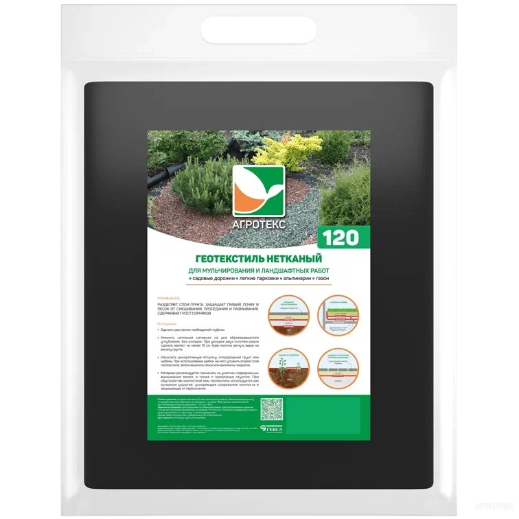 Геотекстиль нетканый Черный пл.120г/кв.м, шир.1,6м, дл.12м, в пакете "Агротекс" *1/7