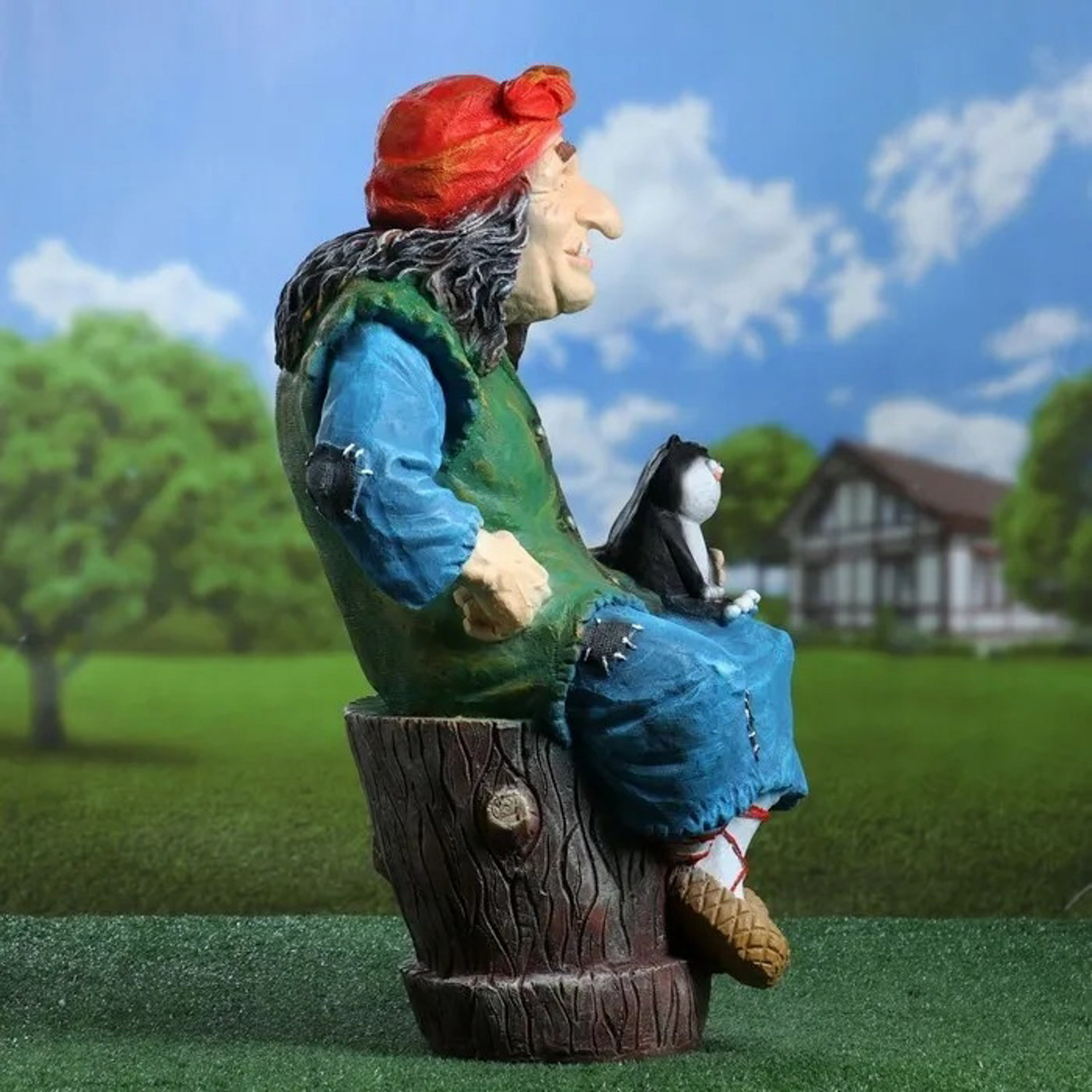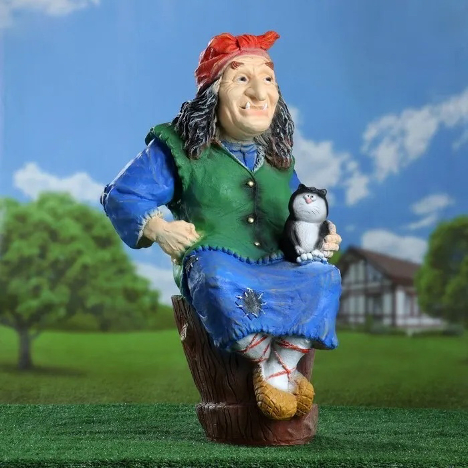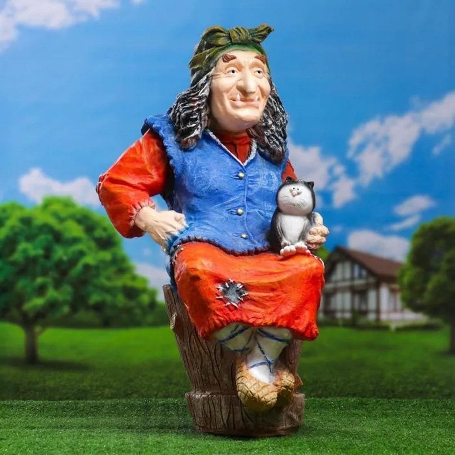 Садовая фигура "Баба Яга на ступе с кошкой" 74х40х36 см МИКС 1126860