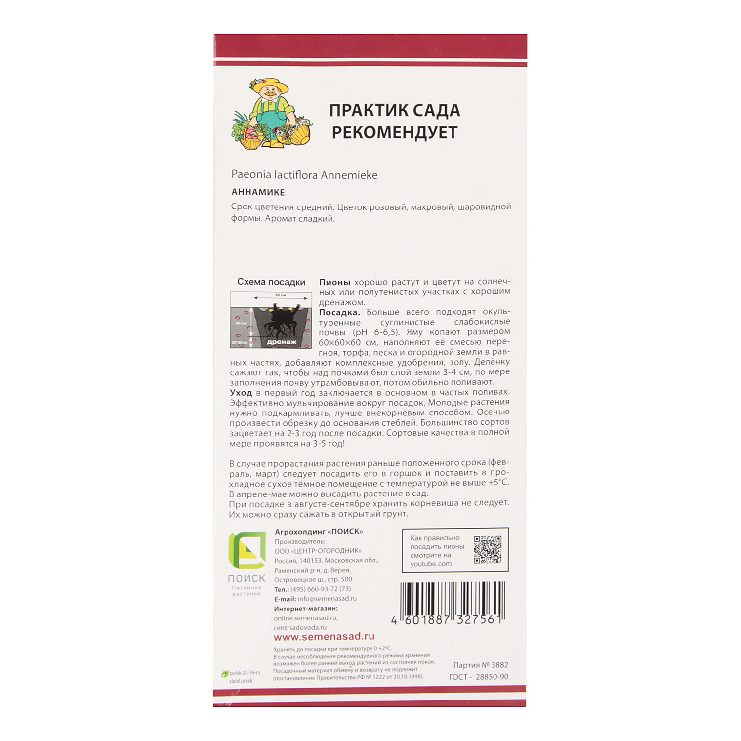 Пион молочноцветковый Аннамике 1шт