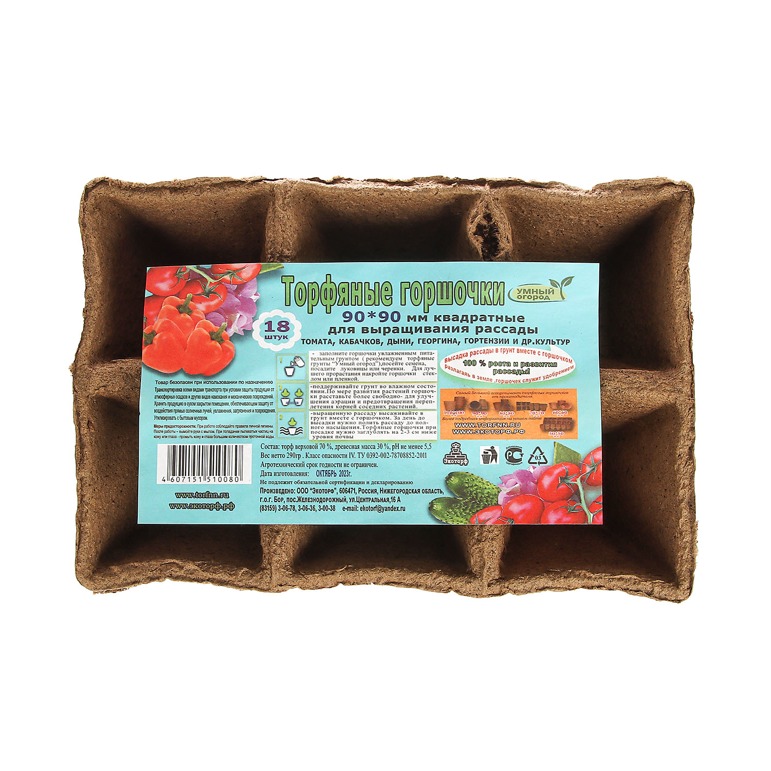 Горшочки торфяные 9х9 см, 400 мл, 18 шт.