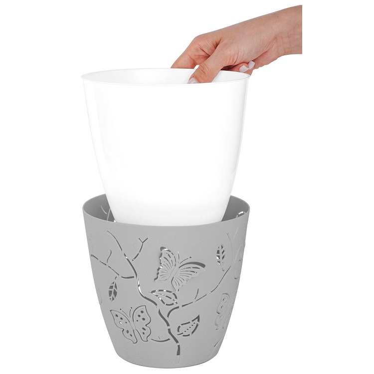 Кашпо пластм. "Butterflies" 0,7л d верха 115мм h105мм серый шторм PT401110025 ("Plast Team") *1/20