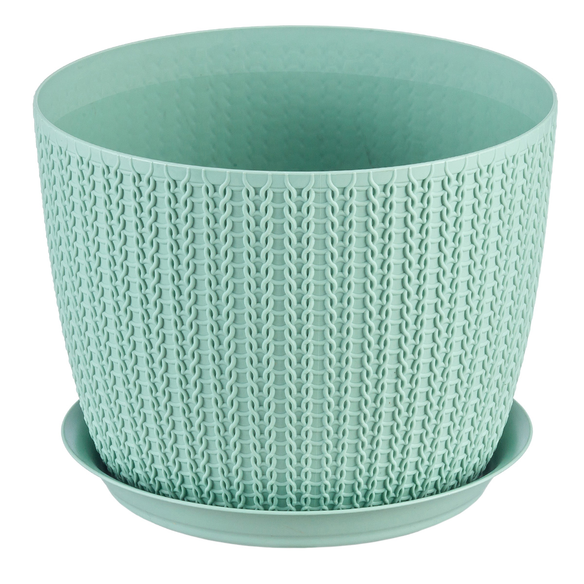 Кашпо пластм. "Вязание" 1,9л д.155мм с поддоном Фисташковый М3120 ("М-Пластика") *1/20