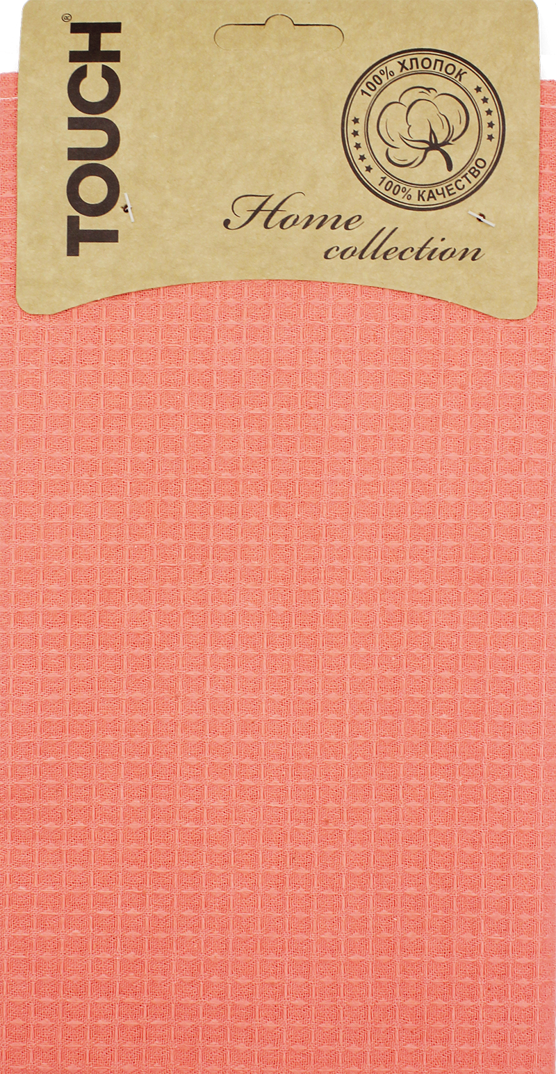Полотенце вафельное 35*55см на хангере Крупная клетка коралл 220г/м2 Touch *6