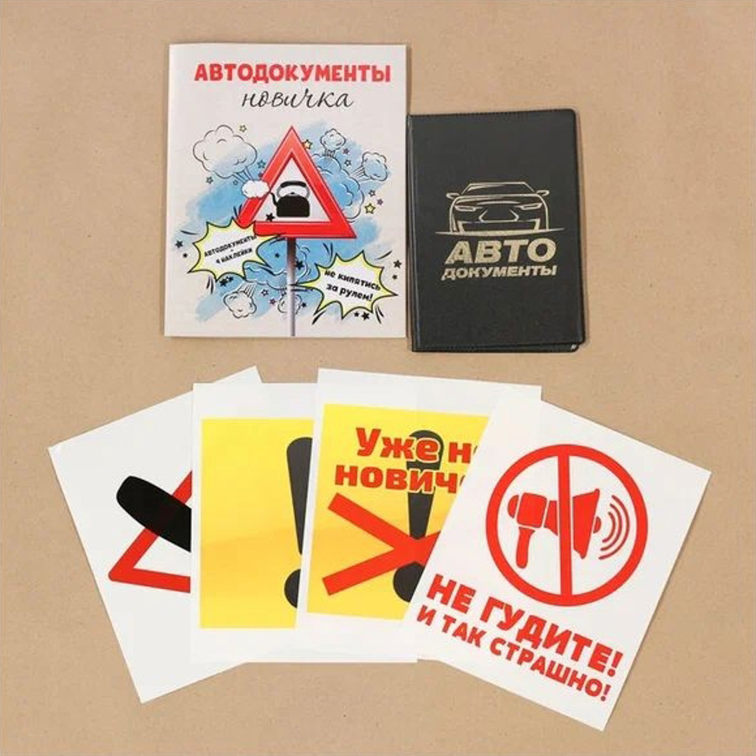 Набор: обложка для автодокументов и 4 наклейки "Автодокументы новичка" 2477550