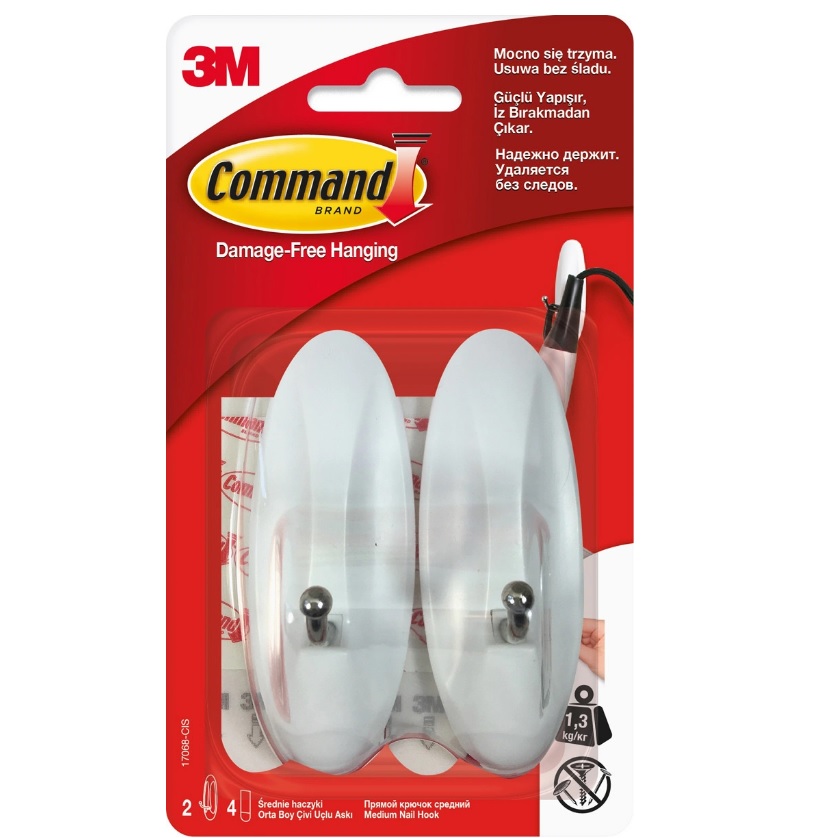 Крючки самоклеящиеся пластм. с металл. Бел. Комплект 2шт (+2сменн.клейк.пол) 17068 Command (3M™)*1/6