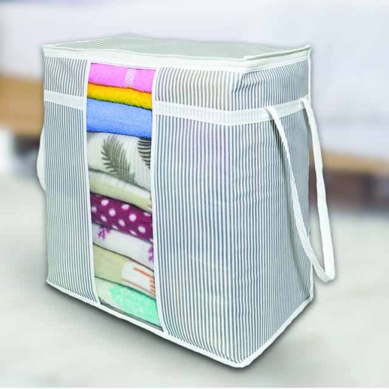 Короб для хранения нетканый материал "LINE" 500Х450Х300мм с крышкой,с окном Св.-Серый 411236030*1/24