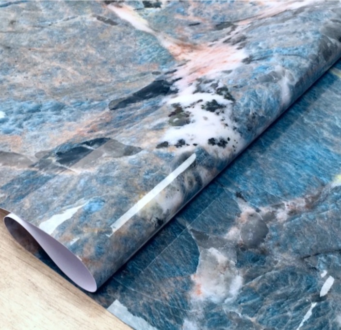 Клеёнка без основы "термо" гладкая "Мрамор синий" шир.0,8м,толщ.0,65мм GW-52241"ТермоКлеёнка" *20