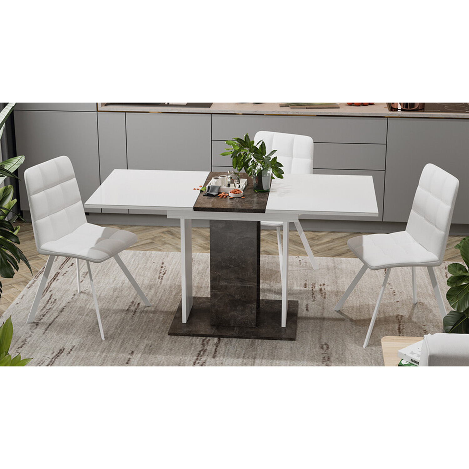 Стол обеденный прямоугольный раздв.Кёльн Тип1 Ателье темный, Белый, Стекло Белый глянец1