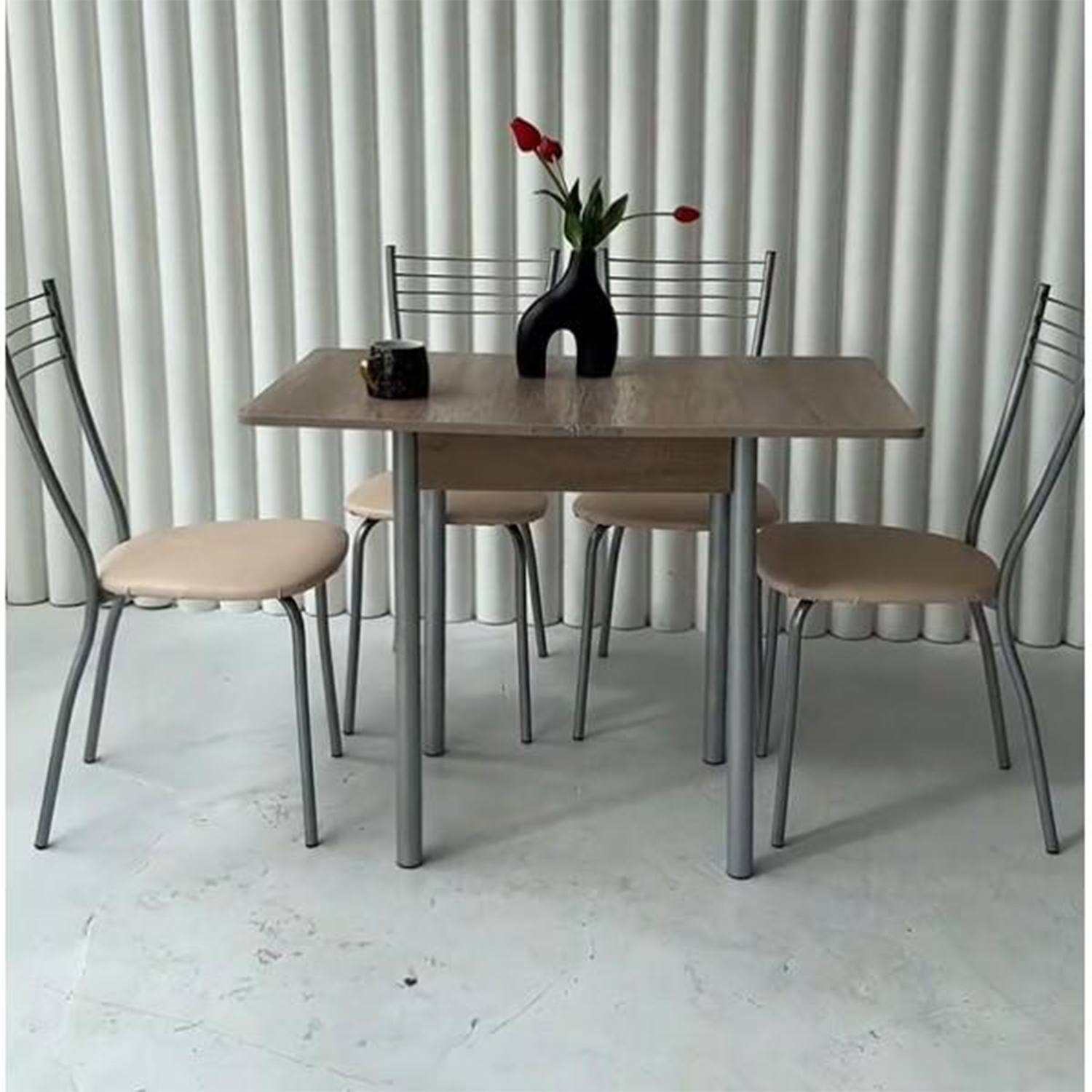 Стол раскладывается с помощью ломберных петель и поворотной столешницы. Столешница выполнена из высококачественного ЛДСП, толщиной 16 мм. Стол со скругленными углами. Металлические ножки из круглой трубы максимально просты в установке, и надежны в эксплуатации, изготовлены из трубы диаметром 40 мм.