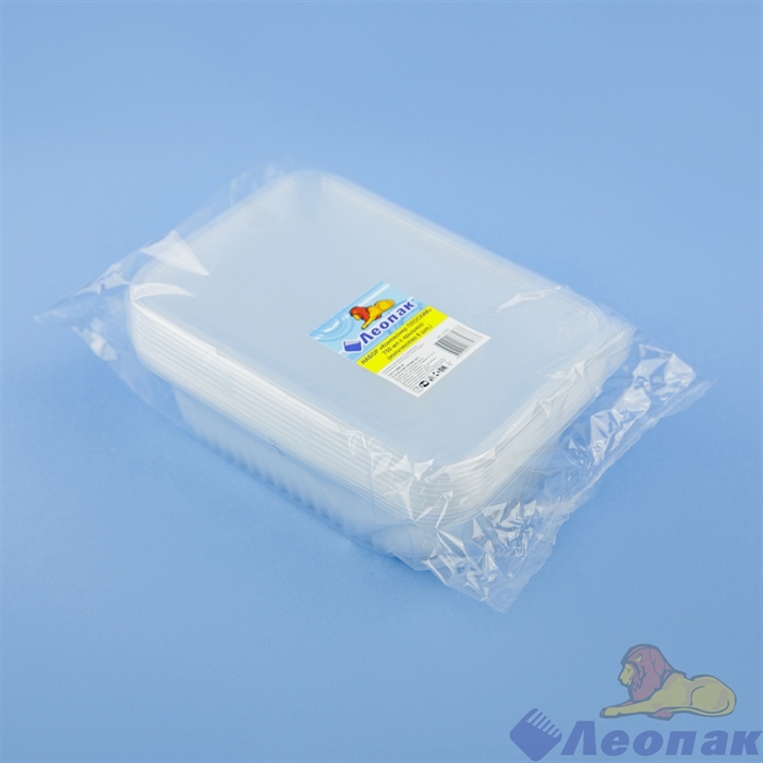 Одноразовые контейнеры с Крышками 0,75л прямоуг. НАБОР 6ШТ Плоский Леопак *120