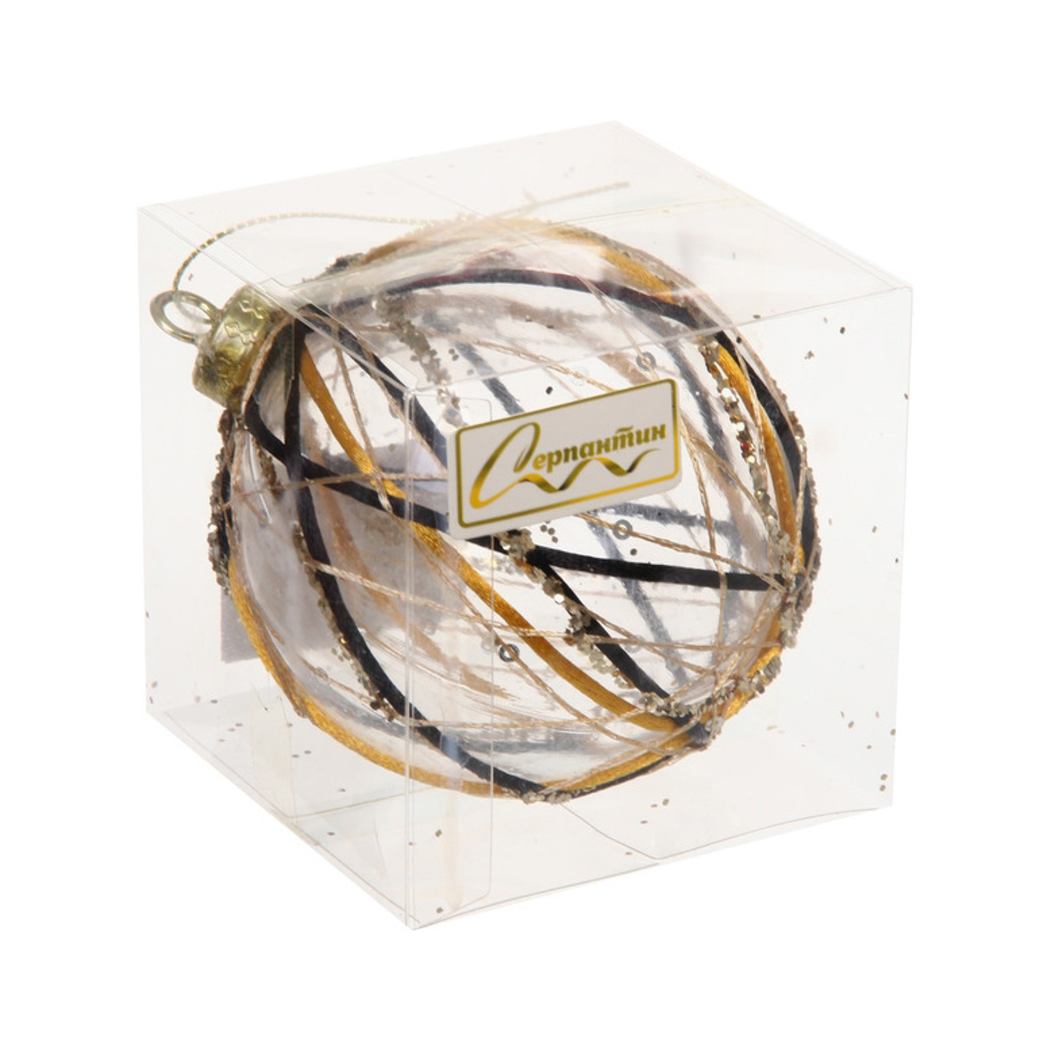 Новогодний шар "Изысканные узоры" 8 см, Чёрный/Золото