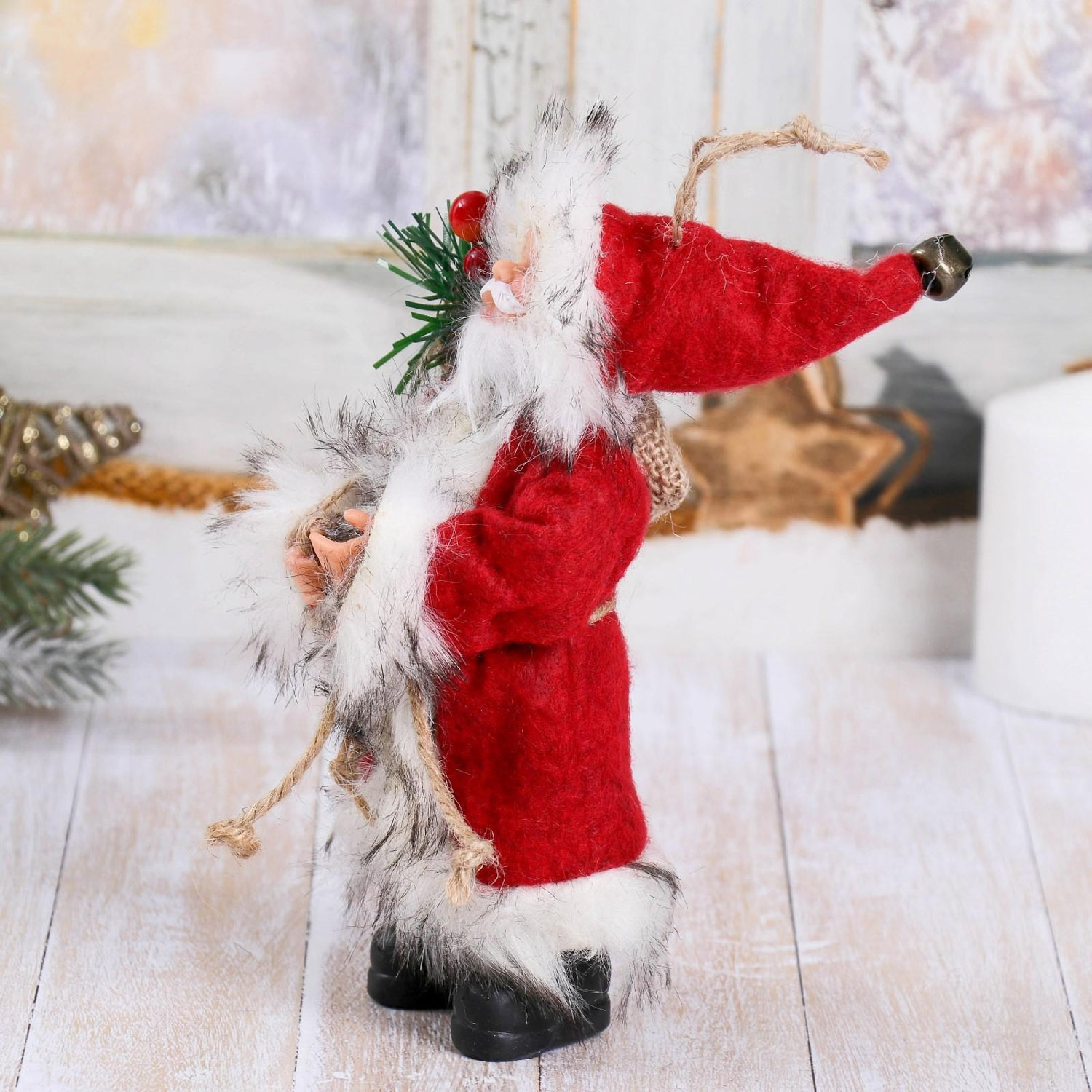 Дед Мороз в красной шубке с лесными гостинцами 16 см 4316754