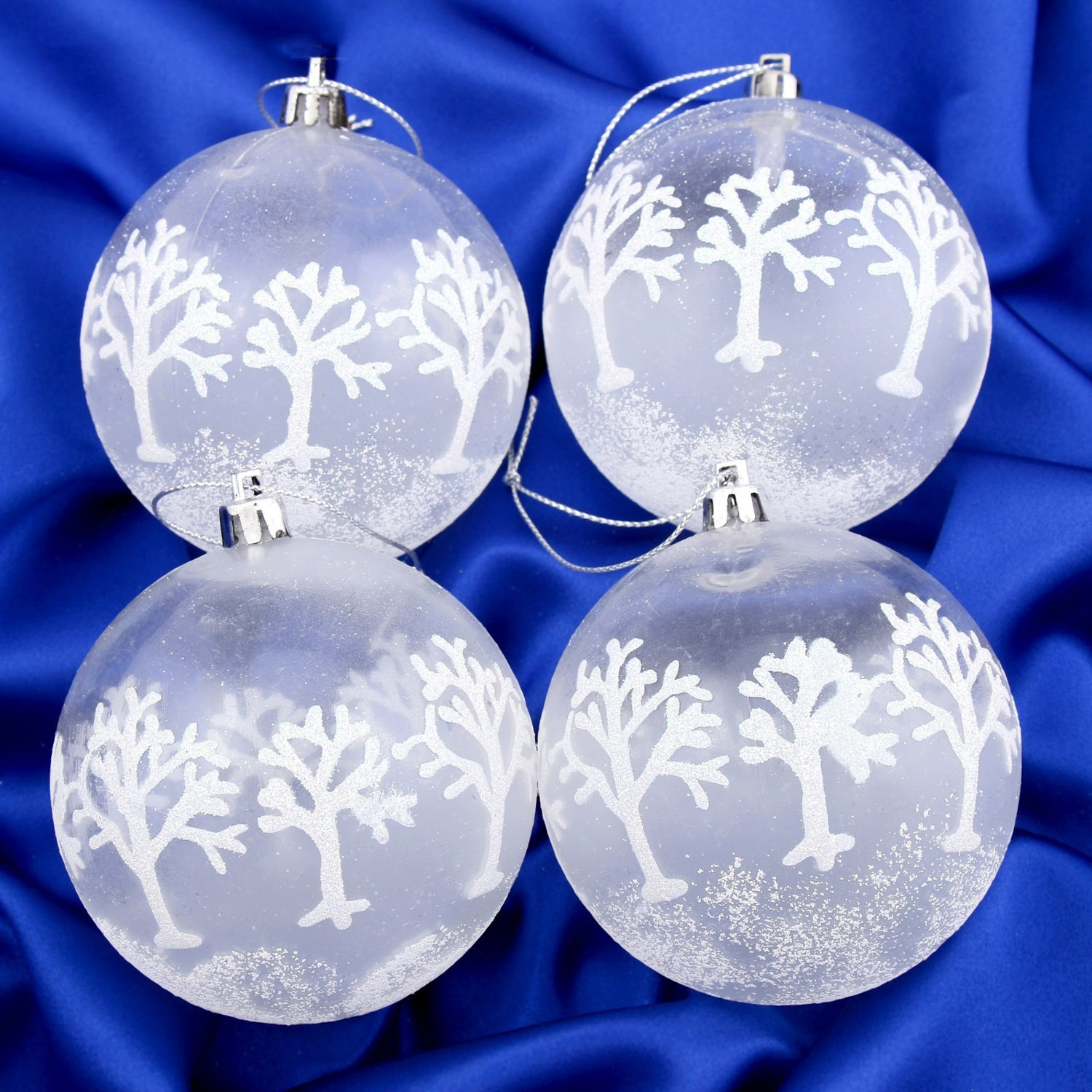 Набор шаров пластик d-8 см, 4 шт "Деревья в снегу" белый 4193027