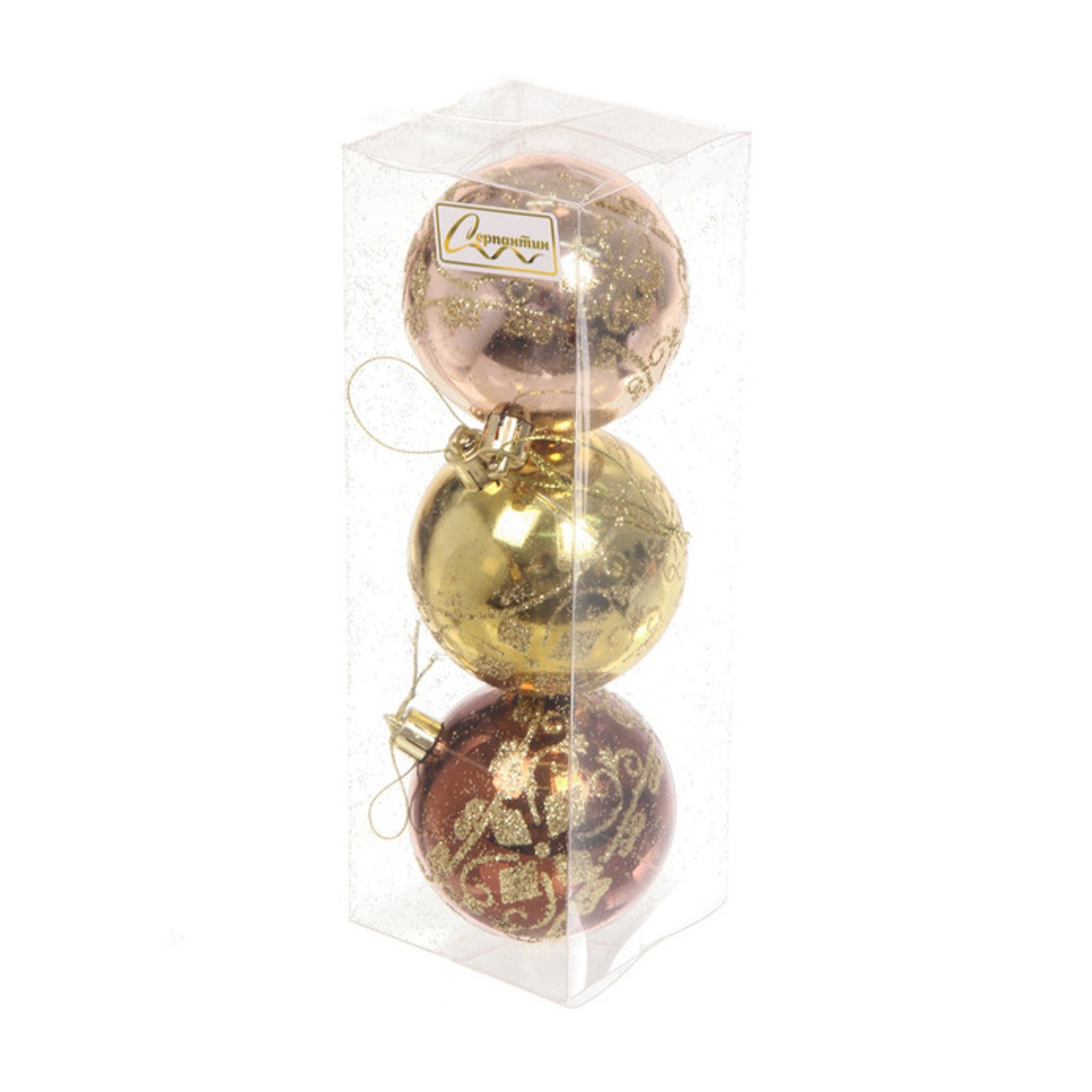 Новогодние шары 7см (набор 3шт) "Ажур", шоколад/золото/шампань