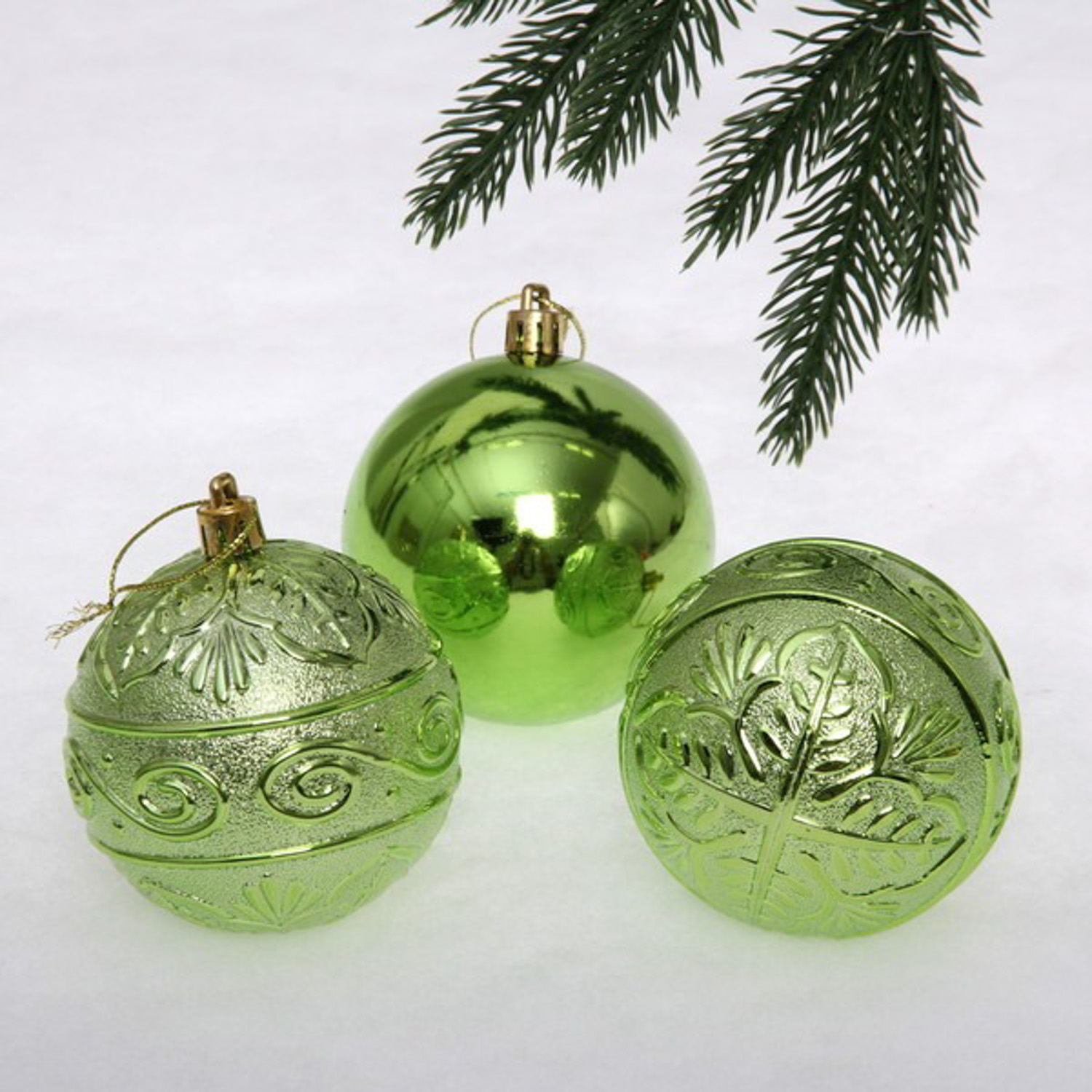 Новогодние шары 8 см (набор 3 шт) "Микс фактур", салатовый