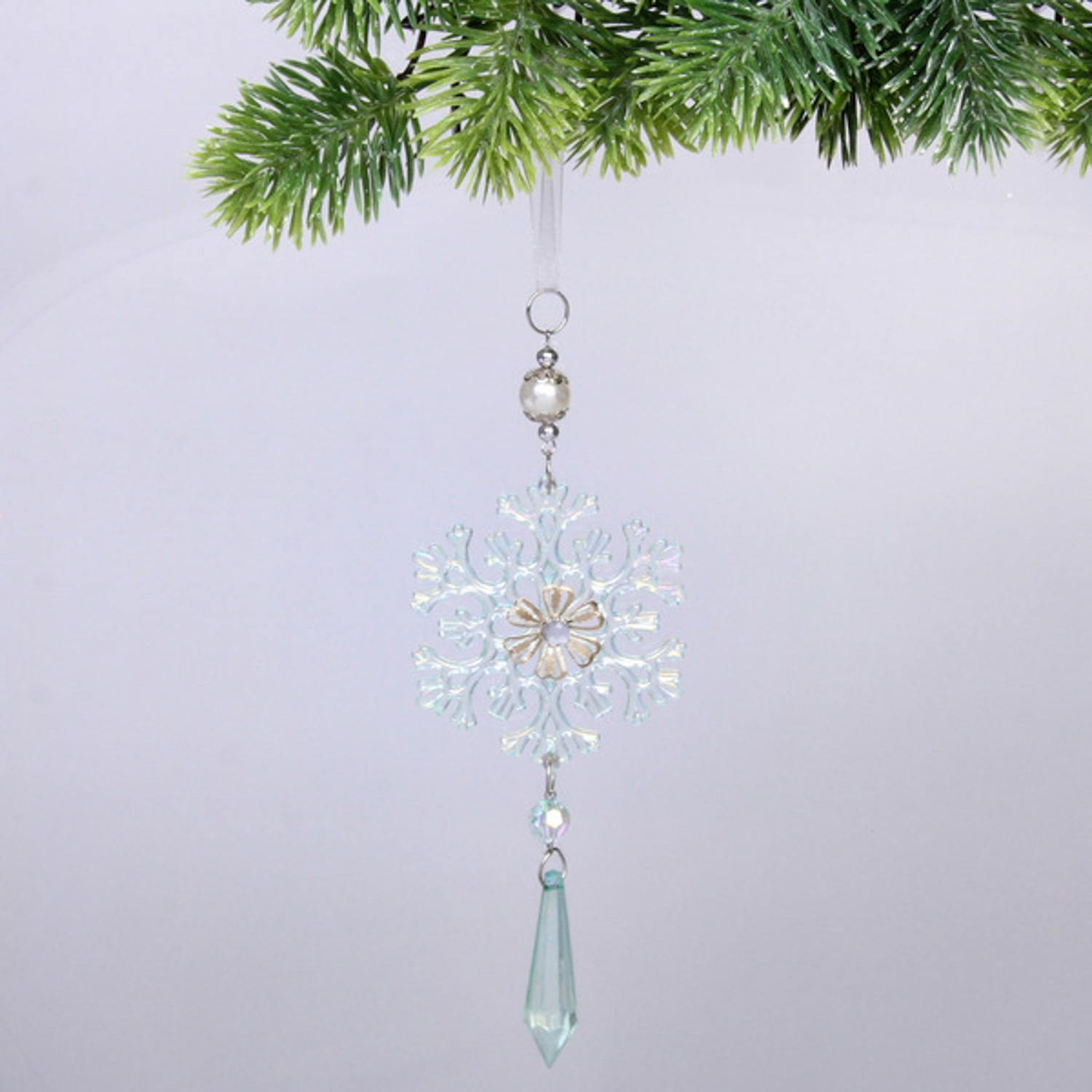 Подвеска "Ледяная снежинка" 8,5*20 см, Зелёный