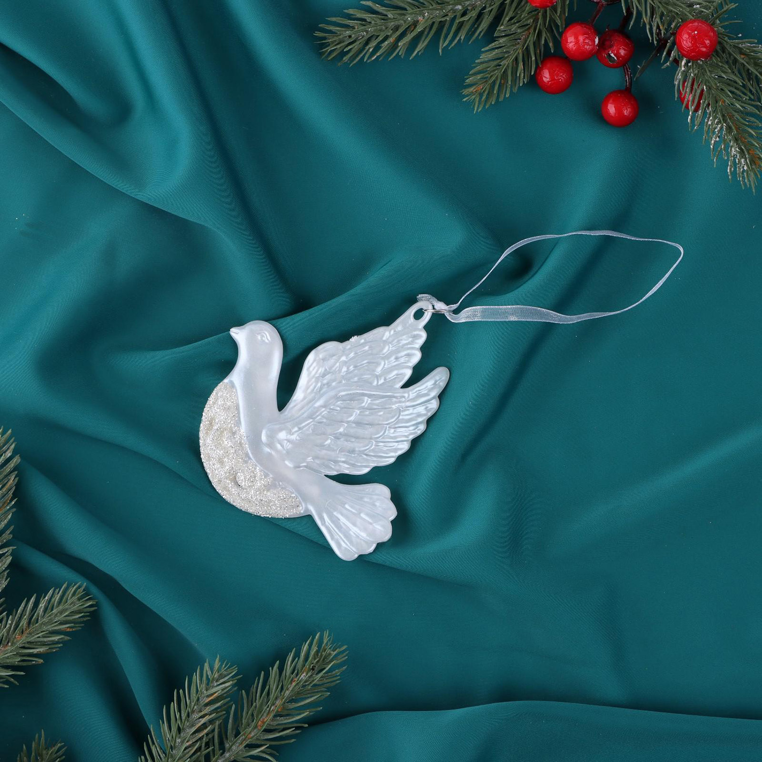 Украшение ёлочное "Голубка блеск" 10х10,5 см, белый 6953987