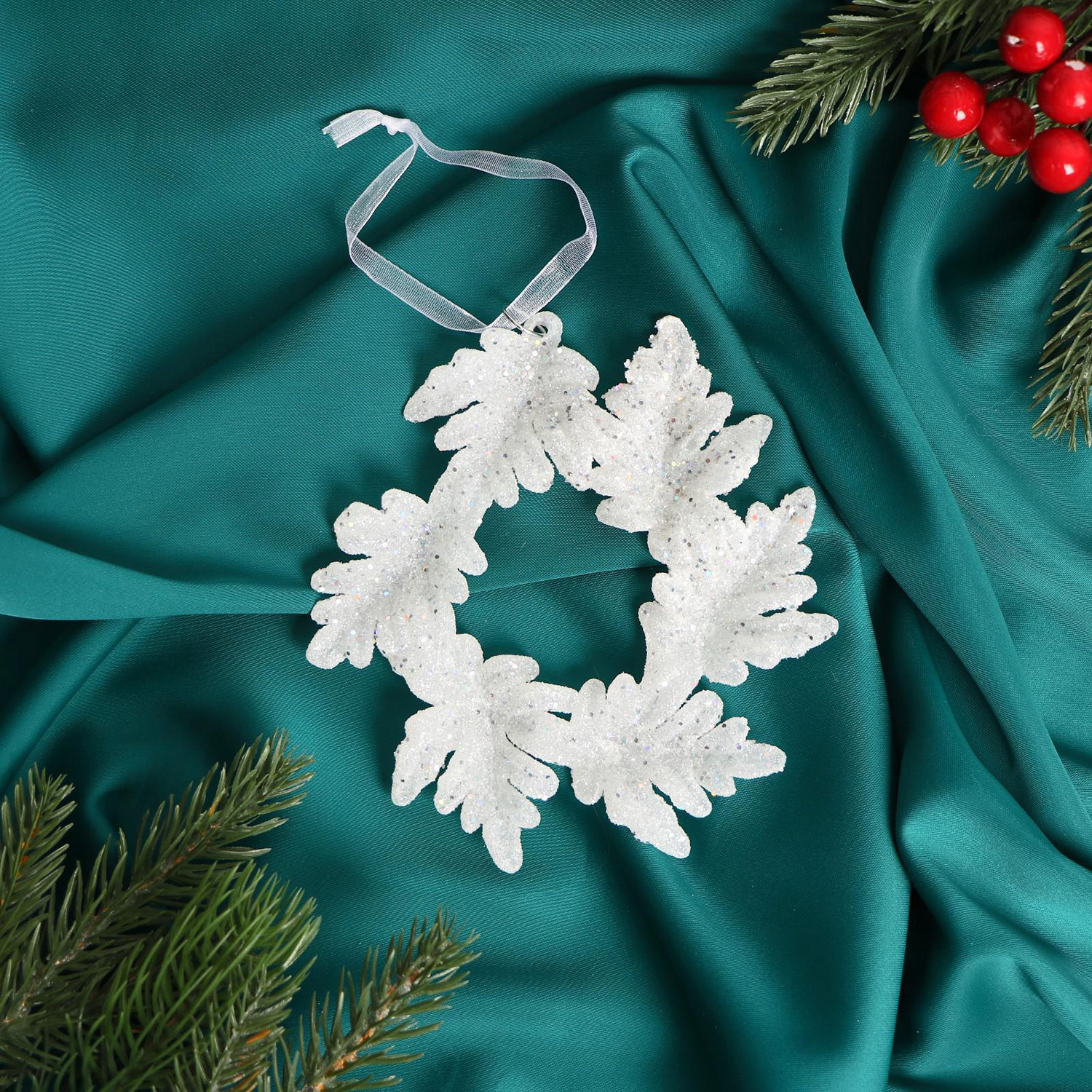 Украшение ёлочное "Новогодний венок" 13 см, белый 5044996