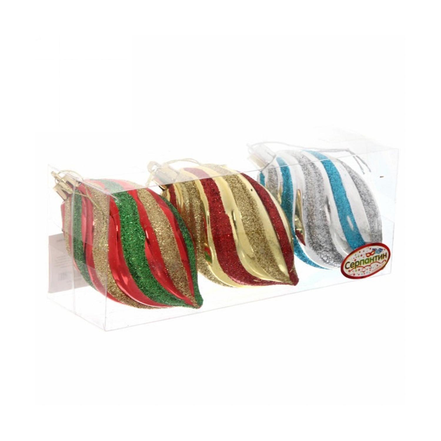 яяяЁлочные игрушки, набор 3шт, 9см"Капля блеск", микс