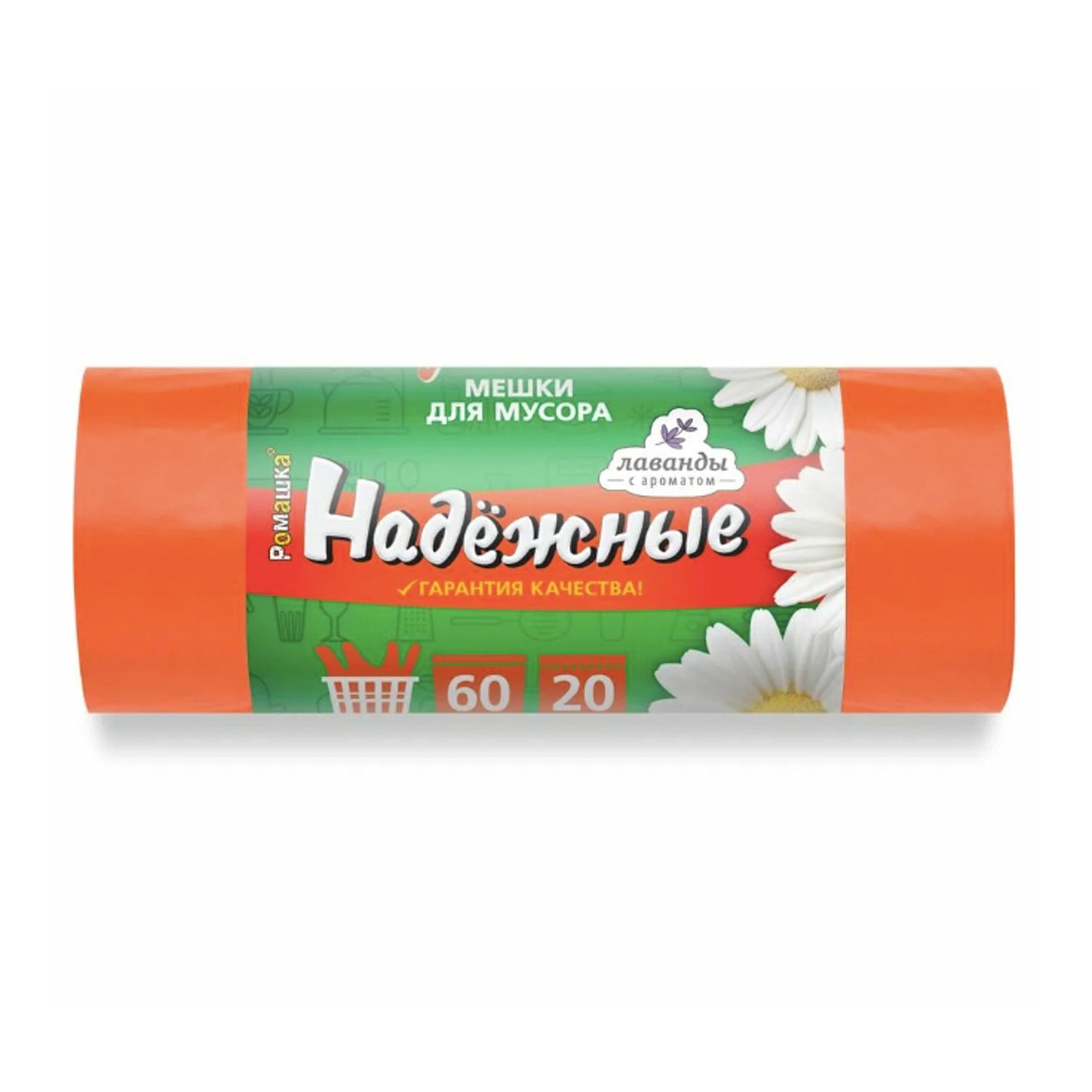 Мешки для мусора с "ушками" 60л*20шт толщ.15мкм "Надежные" Оранжевый арт.ВЛ06620У "Ромашка" *20