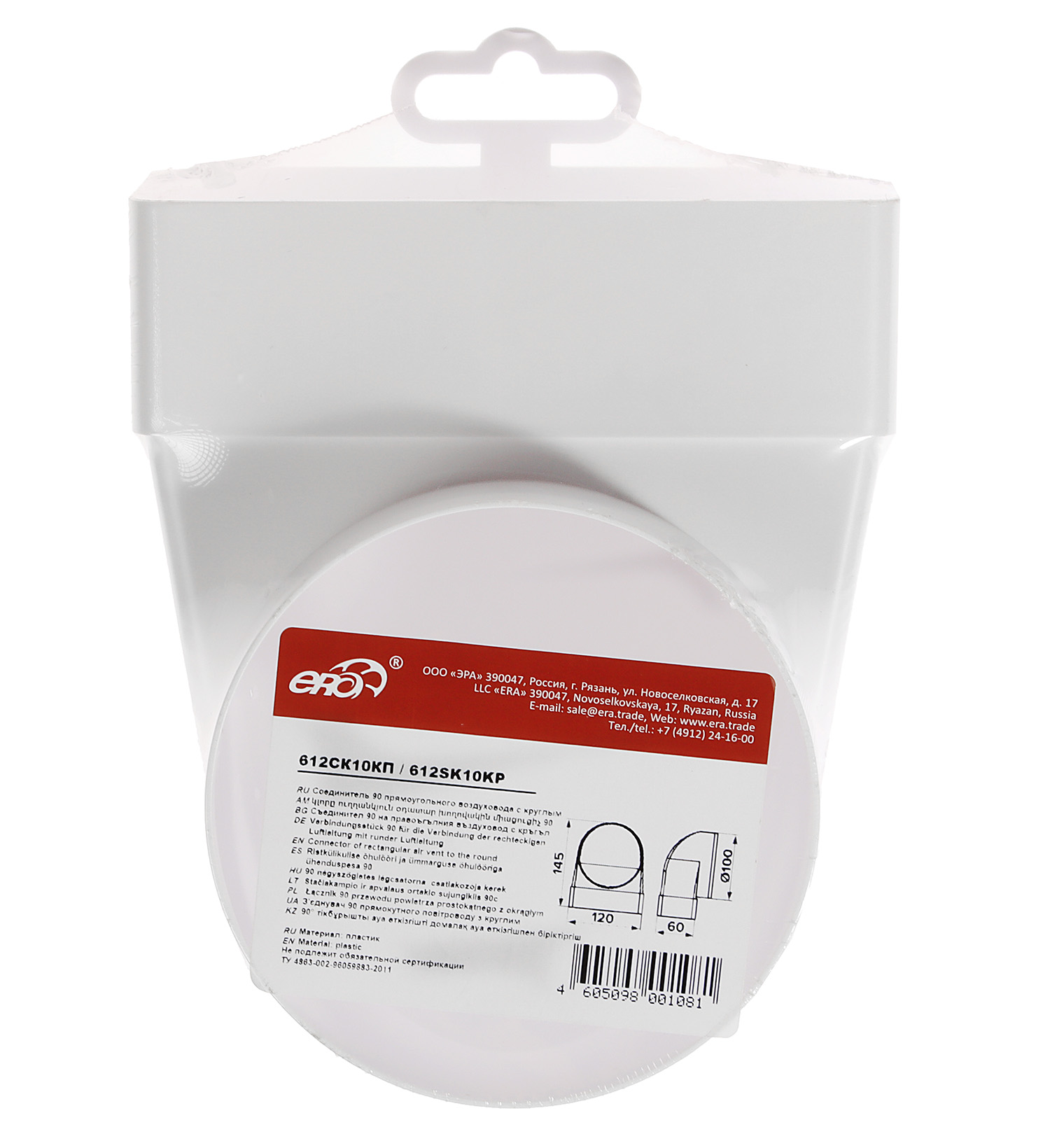 Соединитель воздуховода прямоугольного 60х120мм 612СК10ФП (фланец Ø100мм) *1/30