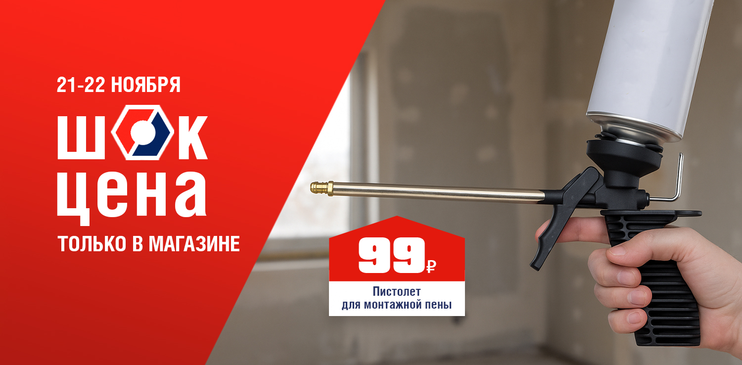 Идеальные швы начинаются с правильного инструмента. Пистолет для монтажной пены — для тех, кто ценит точность и аккуратность в каждом движении. Подарите себе комфорт и идеальный результат! 21 и 22 ноября в розничных магазинах ДомоСтрой не пропустите ШОК-цену: