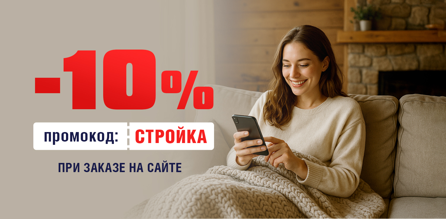Успейте воспользоваться скидкой 10% по промокоду СТРОЙКА. Скидку 10% можно получить при заказе на сайте, для этого: